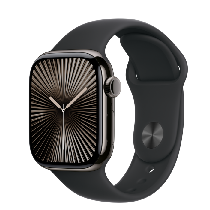 Apple Watch Series 10 GPS + Cellular 42mm Slate Titanium Case with Black Sport Band - S/M