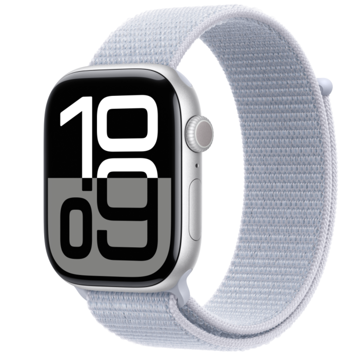 Apple Watch Series 10 GPS + Cellular 46mm Silver Aluminium Case with Blue Cloud Sport Loop