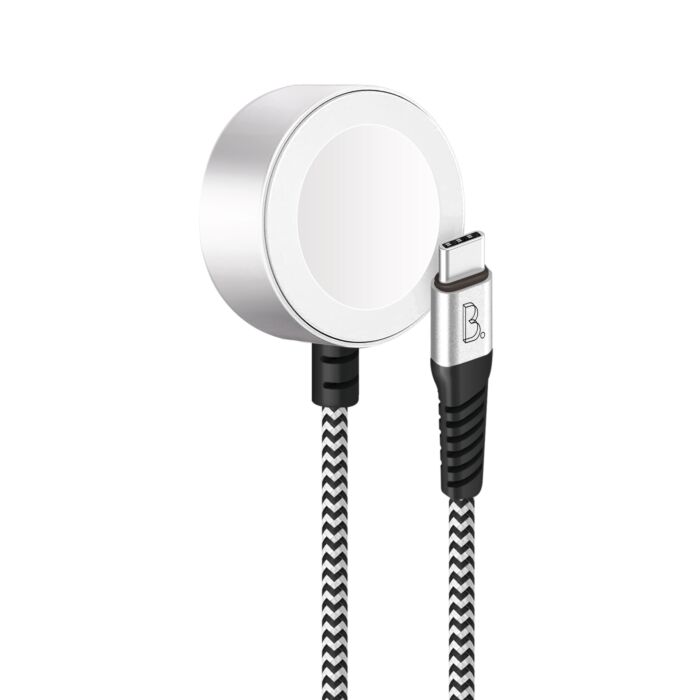 Magnetyczna ładowarka do zegarka Apple Watch – B.On Cotton USB-C to Apple Watch Charger – posiada moduł ładowania z certyfikatem „Made for Apple Watch” oraz wytrzymały przewód w nylonowym oplocie. Jest zgodna z ładowarkami posiadającymi gniazdo USB-C.