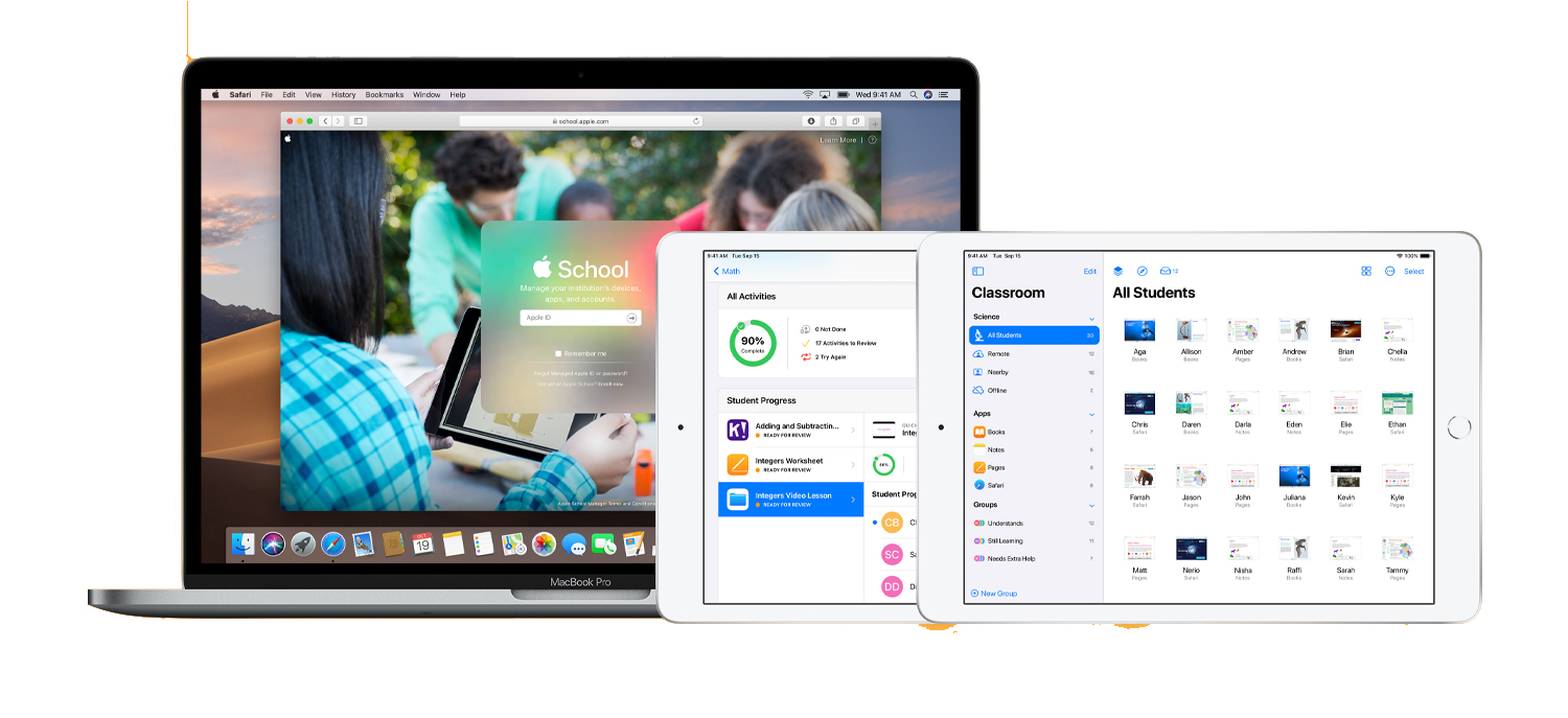 Opracowaliśmy system wdrożenia i zarządzania sprzętem, w którym nauczyciel nie musi się martwić przygotowaniem sprzętu do zajęć. Wystarczy, by sprzęt po zakupie został skonfigurowany przez dział techniczny iSpot oraz szkolny zespół IT za pomocą dedykowanego i prostego w obsłudze Apple School Managera.