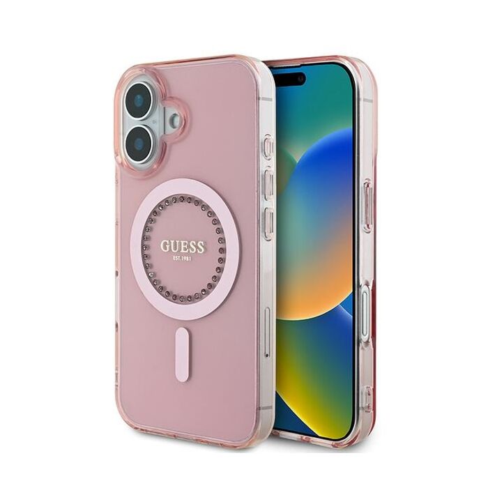 Guess IML Rhinestones MagSafe Różowy - etui iPhone 16 Plus