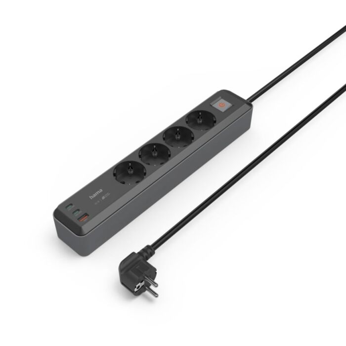 Hama Power Strip 4-Way 2xUSB-C + USB-A 65W to solidna lista zasilająca z 4 gniazdami i 3 portami USB do zasilania wszystkich Twoich urządzeń. Od notebooka przez smartfon i słuchawki po sprzęt hi-fi. To doskonałe rozwiązanie w domu i biurze.