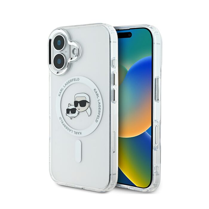 Karl Lagerfeld IML Metal Karl&Choupette Head MagSafe Biały - etui iPhone 16