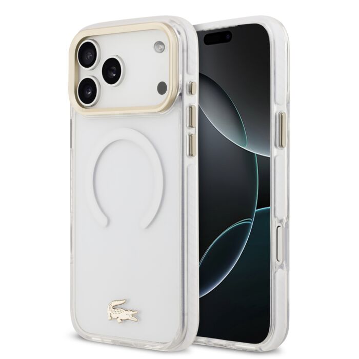 Lacoste Shockproof Frosted Gold biały - etui iPhone 17 Pro Max