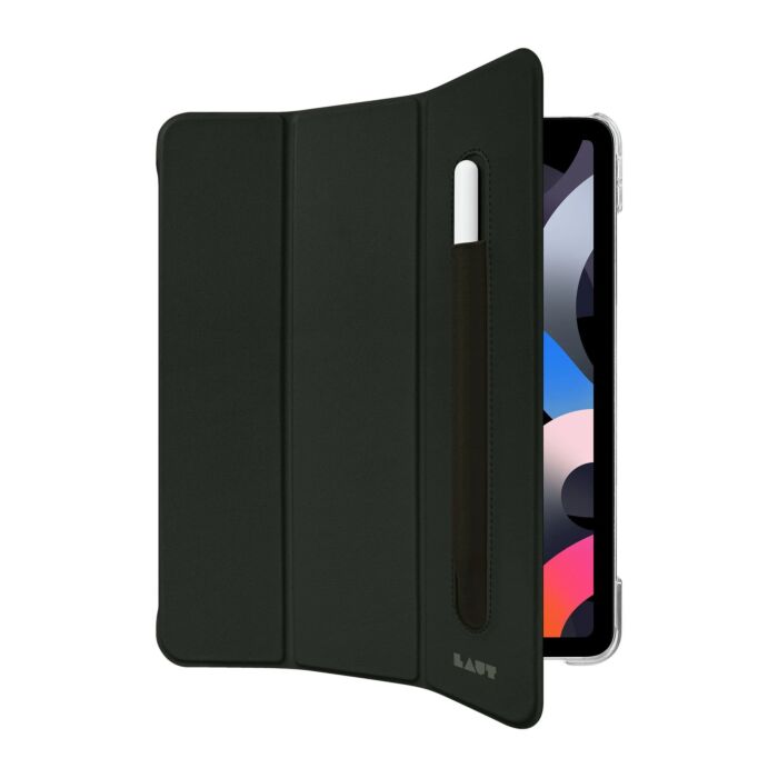 Funkcja podstawki umożliwia ustawienie iPada pod dwoma kątami – odpowiednimi do pracy i oglądania filmów. Etui Laut Huex posiada wbudowany uchwyt na rysik Apple Pencil. Obsługuje również funkcję automatycznego usypiania i budzenia iPada oszczędzając jego baterię.