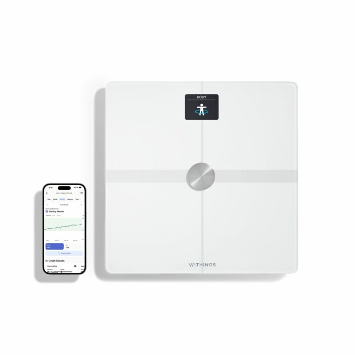 Ustal swoją wymarzoną wagę ciała, a Withings Body Smart będzie wspierała Cię we wszystkich działaniach, aby osiągnąć ten cel. Poza monitorowaniem masy ciała i innymi metrykami, waga pomoże Ci w zarządzaniu Twoim dziennym budżetem kalorii, aby każdy dzień przybliżał Cię do sukcesu.