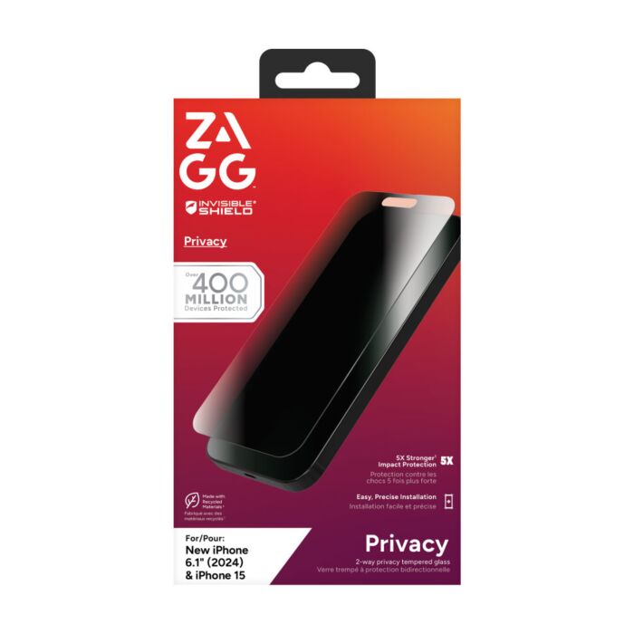 Zagg InvisibleShield Glass Elite Privacy 2 kierunki - szkło prywatyzujące iPhone 15/16